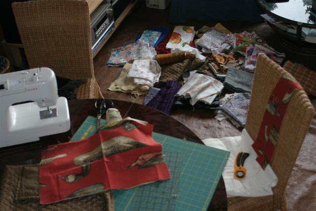 I’m trying to work through that stash and started by sorting it. The stuff I may make cloths out is still in the cupboard, and so are all the smaller pieces. These are the fabrics that will be bags. Or at least that’s the plan.