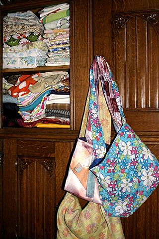 I want to try some thing more adventurous than these basic tote shapes too and I want to make a quilt of some of the pillowcases (most of them are too worn out to make into bags). Oh and there are still those dresses I want to make.