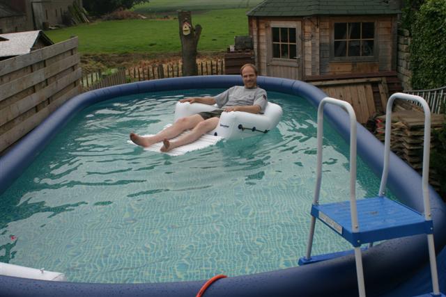 Yay! June 3, 2008 ~ Maggie It’s there, it’s full! Now some nice weather to match…(that’s dh in the floating chair I got him for his birthday) Share this: Share on X (Opens in new window) X Share on Facebook (Opens in new window) Facebook Like Loading... Related