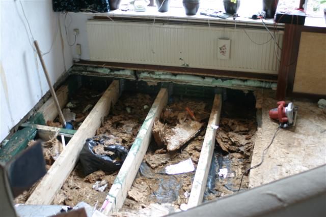 Remember I was complaining about a rotting floor? We didn’t expect it to be this bad. This picture shows the result of a few kicks. Completely gone! So it all has to come out.