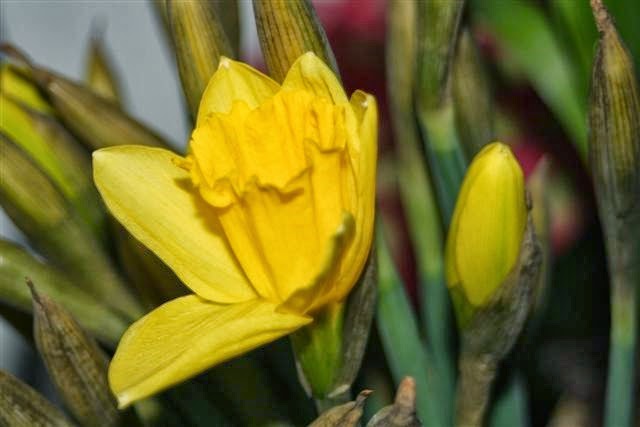I have even more daffodils in the house now, because I got some as a thank you gift from the library today. I was a member of the jury for the regional reading-aloud-contest. Such fun to do! But also a little hard to make the right decisions.