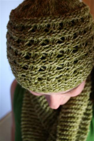 I knit a scarf in two shades of green. Just simple garter stitch.
