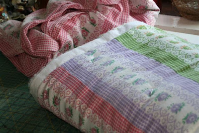 The neighbors just had twins and I thought it would be nice to make them a simple quilt for the girls to play on. These thrifted vintage fabrics were perfect for what I intended to make. The top is finished, now on to the quilting.