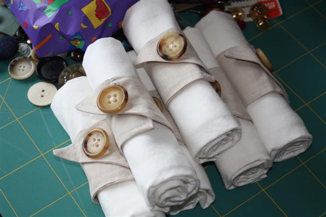 And some last minute napkin “rings” (the napkins were already seamed and ready to use)