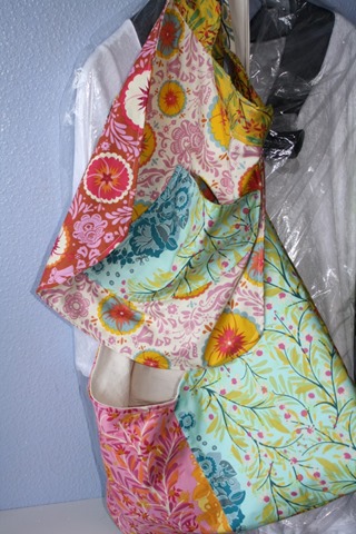 What to do when you are preparing for a two week vakation? Make a bag of course. Cause not one of the many bags I have works for what I need now (big, space for my camera, zippered pocket for passport and money). So I cut into my beloved Anna Maria Horner fat quarters.