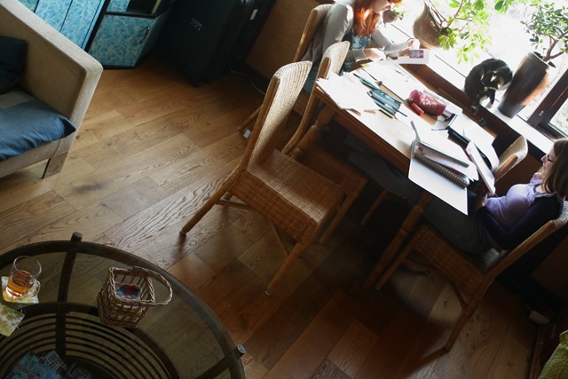 But they still gather here, at the living room table, to do their home work. I like that. These are the things I want to remember when my nest is empty.