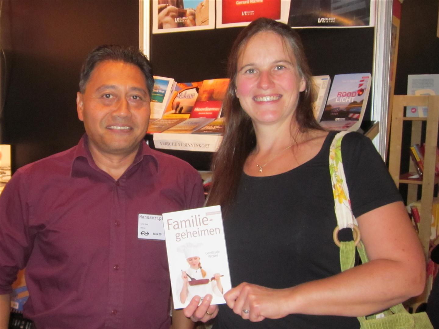 Next to my publisher’s booth Wilma Hollander was signing her new book. We’ve been connecting through the internet for years now and last Wednesday we met for the very first time at a mutual friend’s house. It was fun to see her again though and I wish we could meet once more before she returns to her home in Greece, but the fun meetings she planned are either on the wrong date or too far away for me.