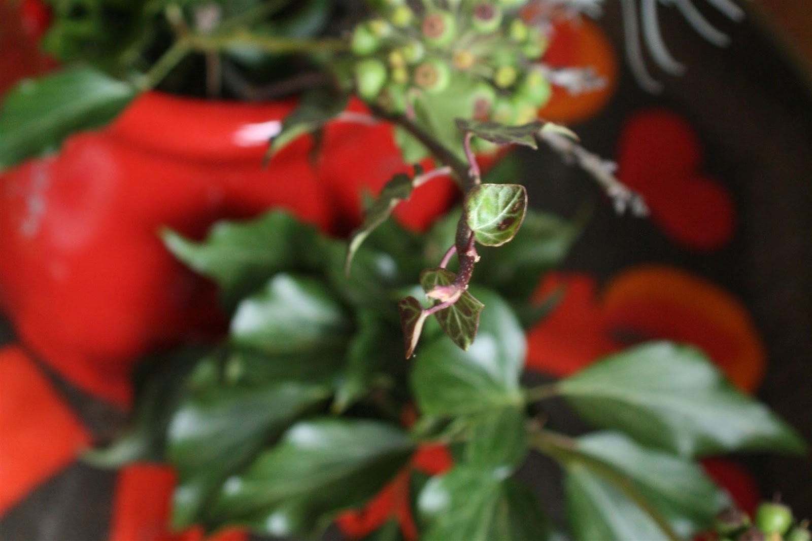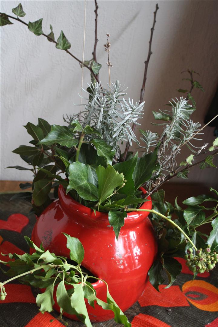 And just because I like some natural things too (I’d like much more of that, but there are too many allergies…) I put some branches from the garden in the strawberry container I got for Sinterklaas. That color screamed Christmas to me from the start…