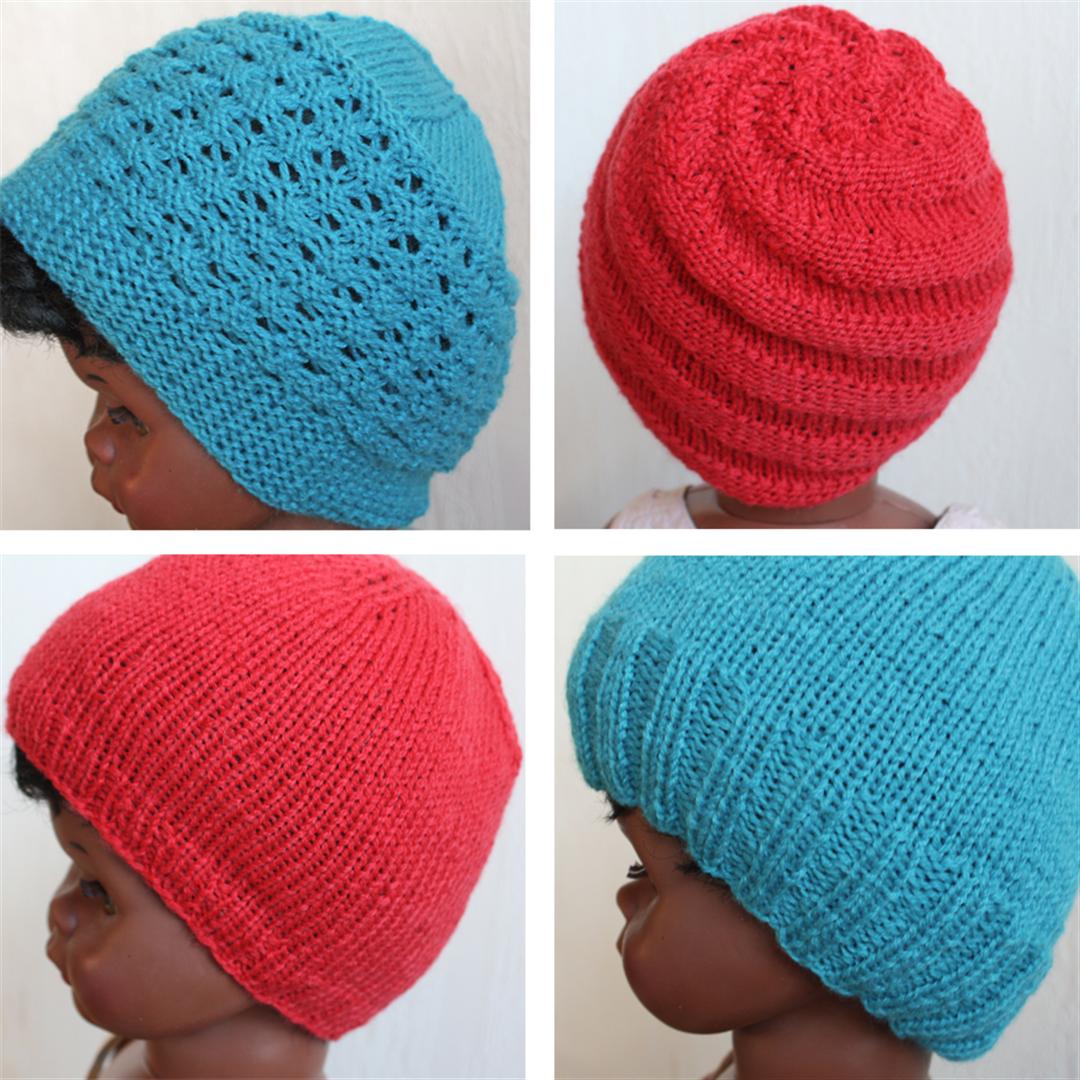 I had four skeins of very thin yarn, so I knit with two strands held together. I managed to squeeze four hats out of it and even had enough left for a square.