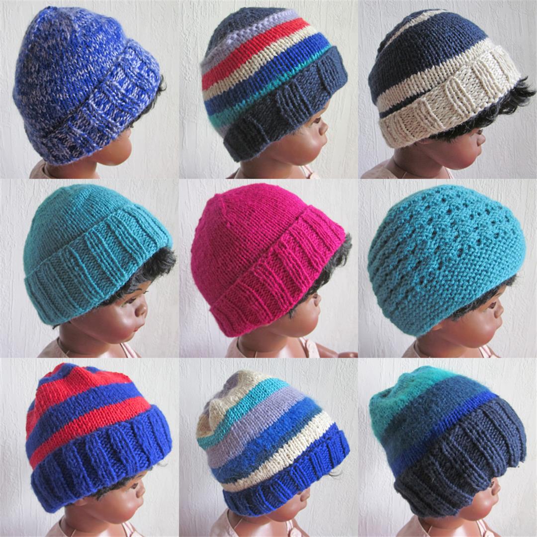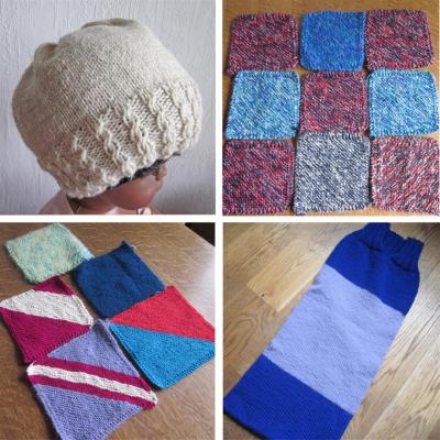Oh. Well. Seems like I have been knitting after all. There were fourteen hats (four of which you’ve already seen), fourteen squares and a cuddle. In all kinds of strange color combinations, since that’s what you get when you buy scraps from the thriftshop.