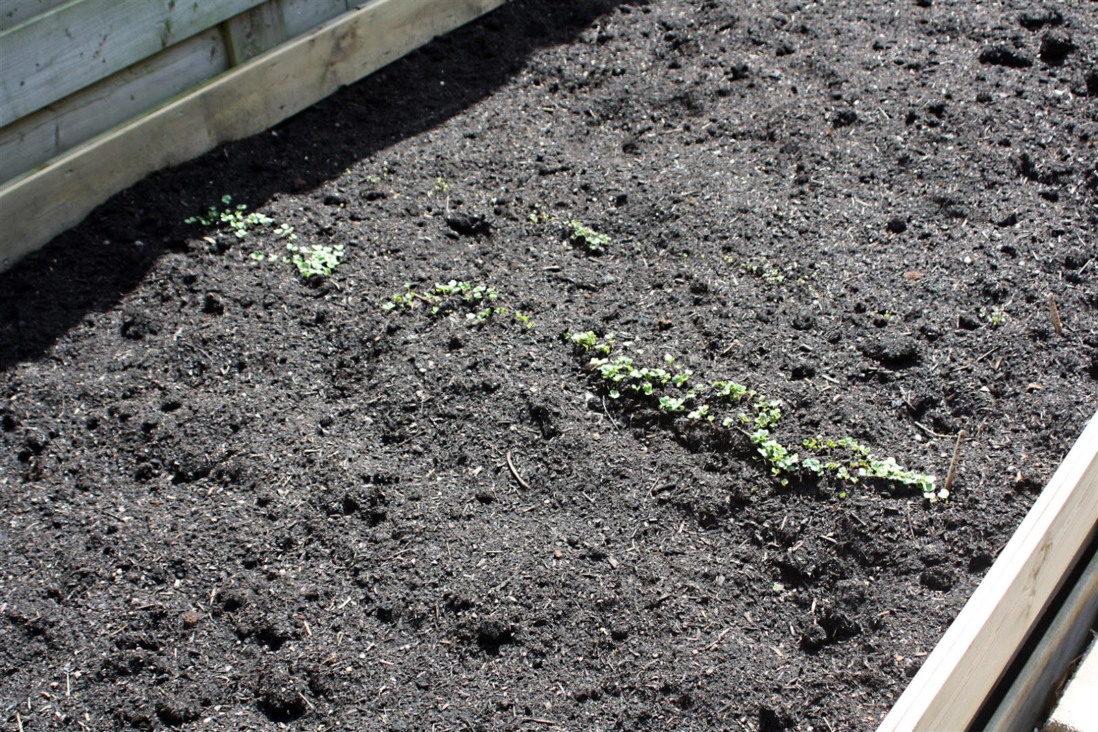 The radish I sowed last week already grew so much and behind it, some of the cauliflower came up too.