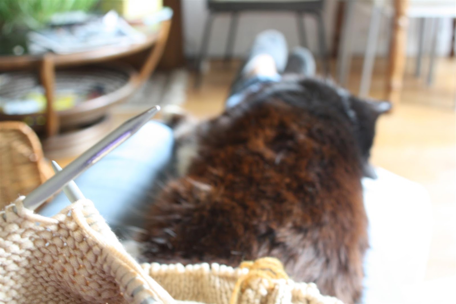 | june 27: knitting with the cat on my lap, two favorite things at once |
