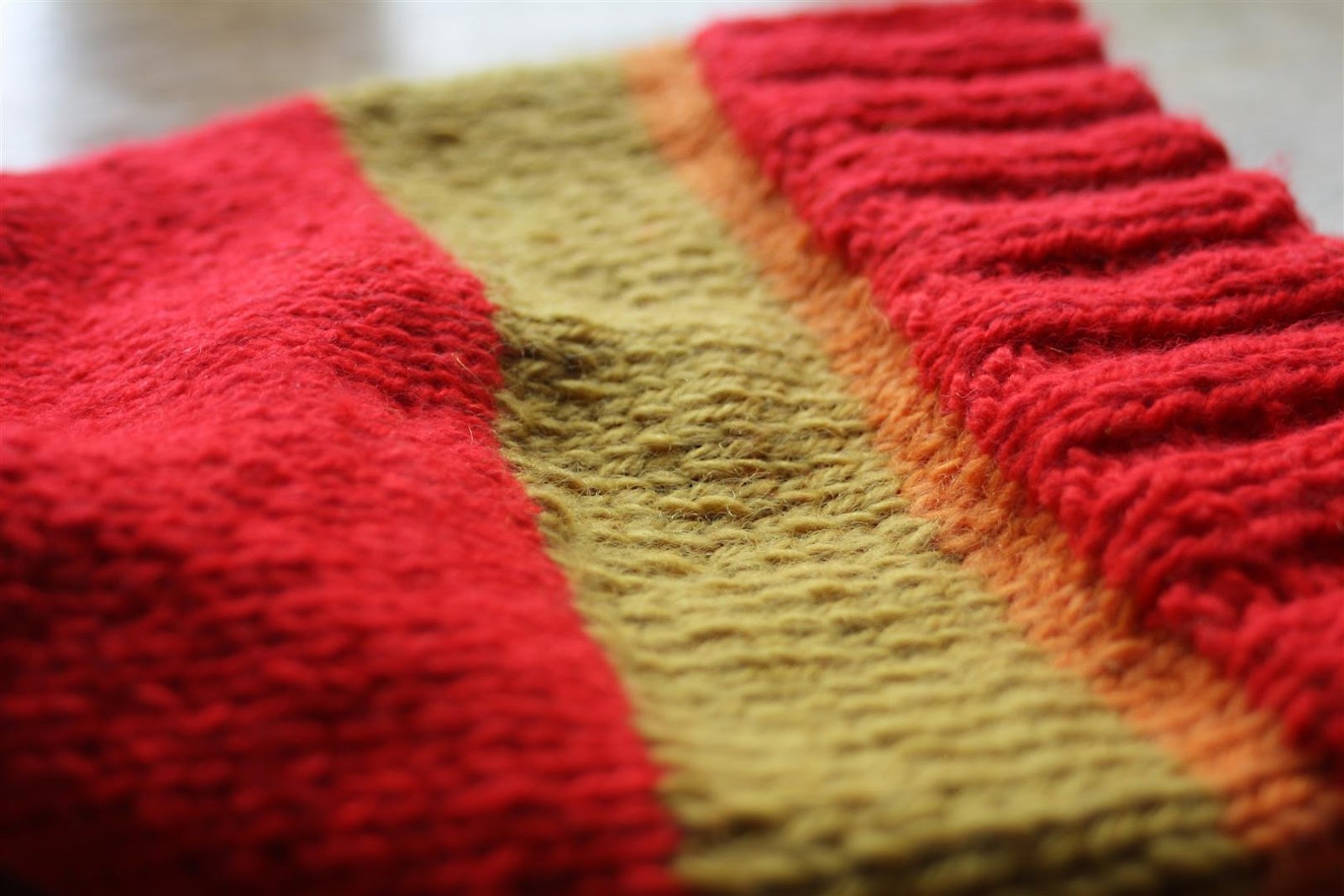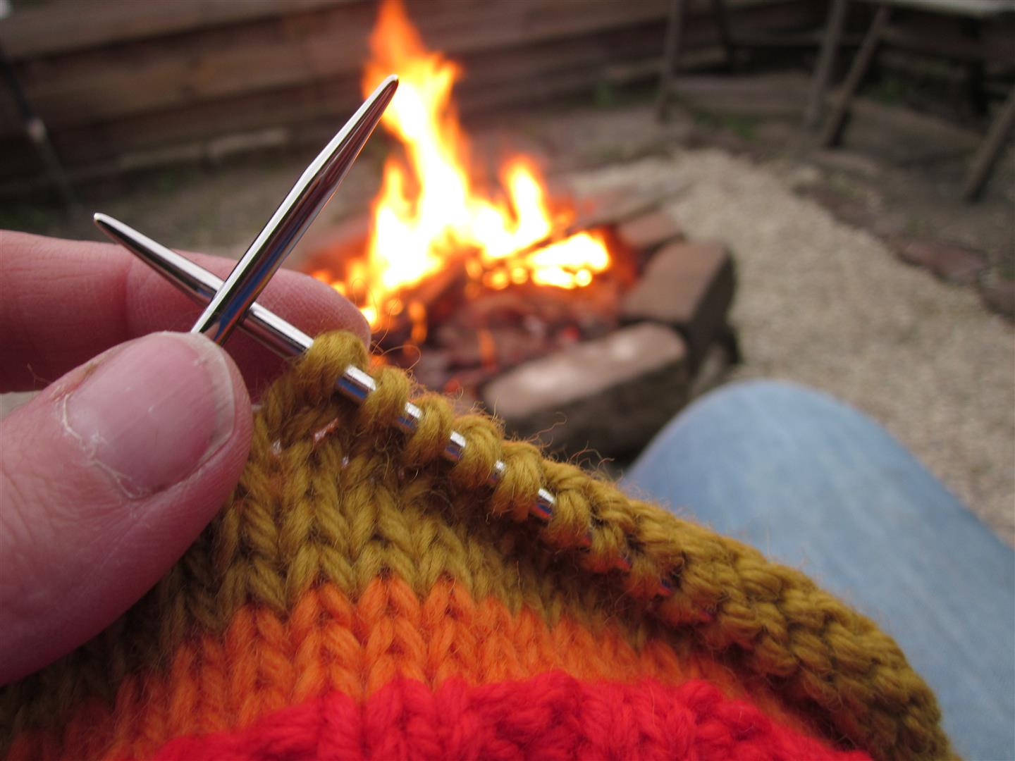 Three days without knitting was not an option, of course, so on Tuesday night I went through my new little stash to find some matching scraps and cast on for a hat for KAS.