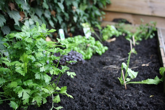 Some common kitchen herbs on the right: chives, celery, parsley and basil.