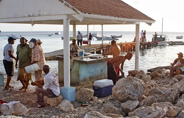 We had an unexpected day off yesterday, so we drove around the island wondering where we might want to live. At Westpunt (literally the west point of the island) we watched some local actvity. They were bringing in the fish, weighing them, cutting and selling them to local restaurants. It was fun to watch.