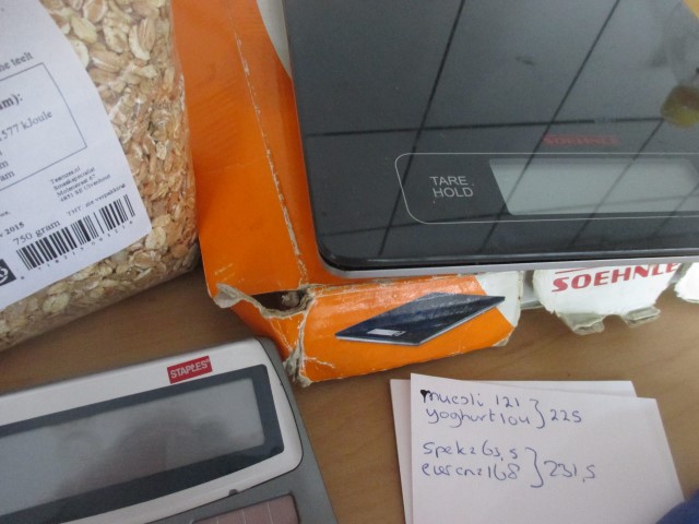 I’m doing the math about my breakfast. Eggs and bacon or yoghurt and muesli, not really a difference in kcals. Although I forgot the butter and that does add quite a few.