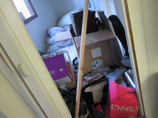 Today’s big mission: turn this (accidental) storage room back into a bedroom. E. will be home next week.