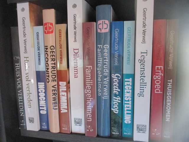 Trying to take a picture of all the books (the bigger books are large prints), but it’s too sunny (no, that can’t be right, it’s never too sunny), so the ligthing is weird.