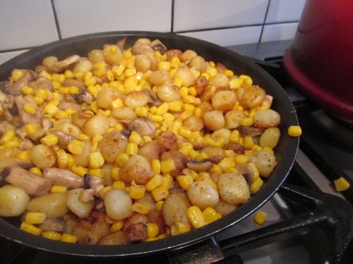 I cooked something with lots of potatoes. Yes, I was going to try low carb, but I found out adjusting to that is not that much fun (understatement) and I just don’t have time for that (understatement too). I will try again later.