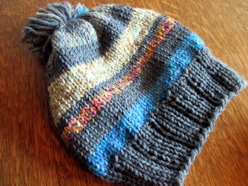 I guessed right; there was enough to make a nice slouchy hat. The very last pieces of the yarn became a pompom to finish it off.