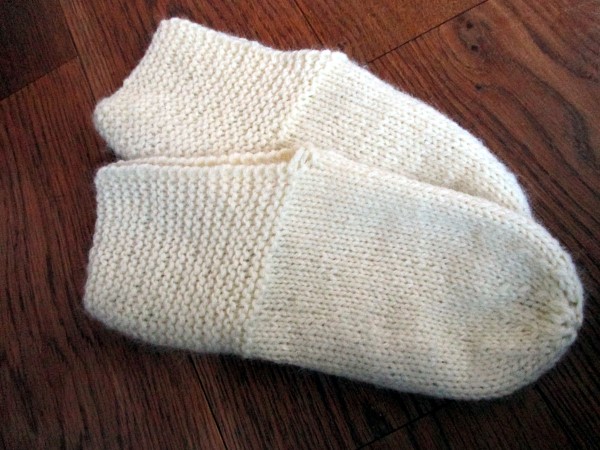 1. the repeat knitter. :)(also, you could stitch a little piece of felt or wool, etc on the bottom of your slippers at the heel and the ball of the foot. i had a pair of slippers like those once, and wish i would have done that to make them hold up longer!)