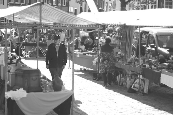 Today I purposely took the big camera with me when I went grocery shopping and I made a detour to visit the antiques market in Gouda to take some pictures there. You know, because I tend to stick to the flowers in my own garden and I needed a bit of a challenge.