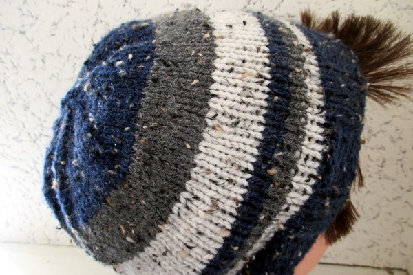 Anyway. Another hat. I’ve been working through my scraps, so stripes it is. But I do like it.