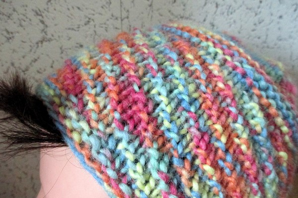 I like this one, though I’d never wear it myself, at least not in these colors. I did love knitting with those bright colors though. The spiral was fun to knit and I may do that again in a different color.