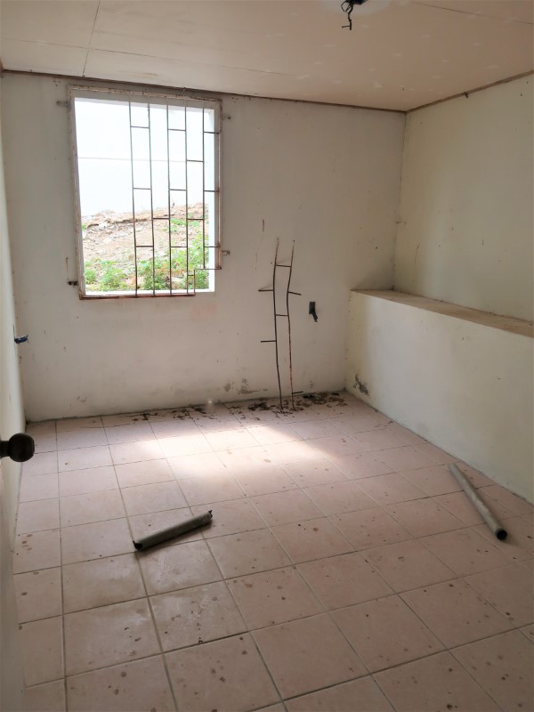 Second bedroom. This where we entered that day. The window is missing and the bars are broken (they already were). When we got the keys, the first thing we did is replace those bars by more sturdy ones (from a window in the kitchen that you cannot reach without a ladder). We don’t want people to enter the house this way. We’re also looking for a window to replace the missing one.