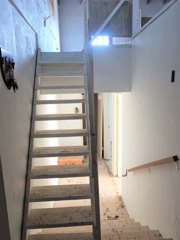 On the left (right in that first picture) there are these stairs. The left one goes up to the upper room.