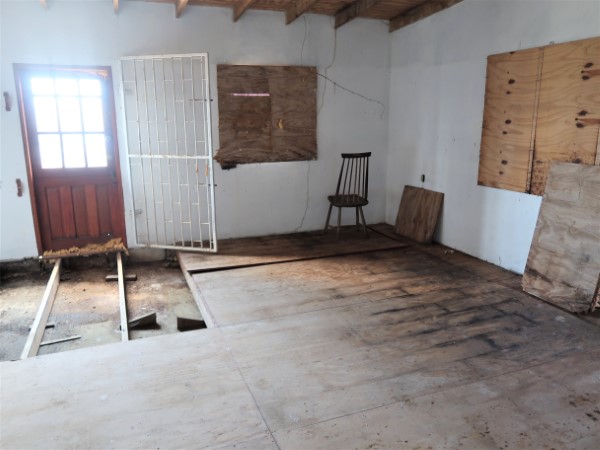 So, this is the front room, where you enter the house. Those double doors go out to the front porch. See the bat droppings? Yuk! It’s also all over the walls.