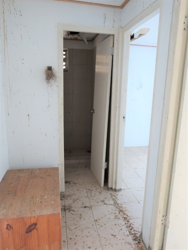 When you go down from those stairs a few pictures back you find this little hallway. Two rooms to the right, bathroom straight ahead. Bat droppings again.