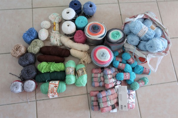 I did buy a lot of cotton yarn when I was in The Netherlands, both new and thrifted, so that limited stash I used to have to deal with is no longer a problem. I also bought some acrylic yarn that would be lovely as a cowl or shawl (those jelly rolls in the middle of the picture), so I think I will start that cowl/showl pattern soon.