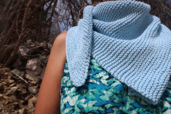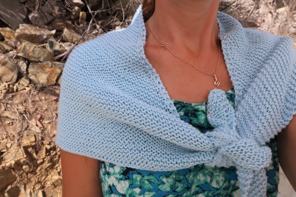 So here are some pictures of the simplest shawl I ever made. But that’s okay. I may actually wear this one. Or not. I’m starting to believe that no matter how much I love how other people look wearing shawls, I don’t feel right in them. I guess I’m more of a cardigan person. Luckily I have enough of that blue cotton yarn left to make a cardigan too…