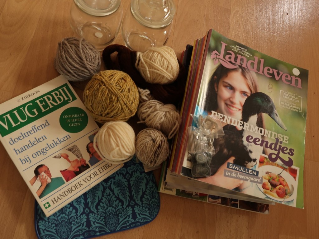 - A giant stack of magazines. The title literally translated is “Country living”, but that’s actually another magazine. Love that one too, but this one is more about the actual living (keeping live stock, gardening, recipes) thought it does have articles about beautiful country houses too. I was tempted to buy the newest one in the supermarket, but it’s expensive, so I put it back. Now I have 13 for not even half the price! I don’t care that they’re older. Ducks will be ducks 😉