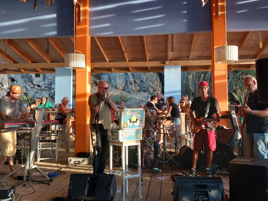 We had a great weekend, full of resting, swimming, knitting, cuddling with Jul (the cat), ending it with our first trip to Kokomo beach in over a year, where our favorite band was playing.