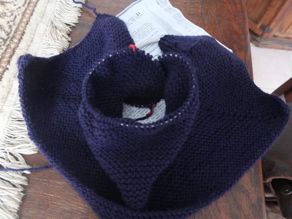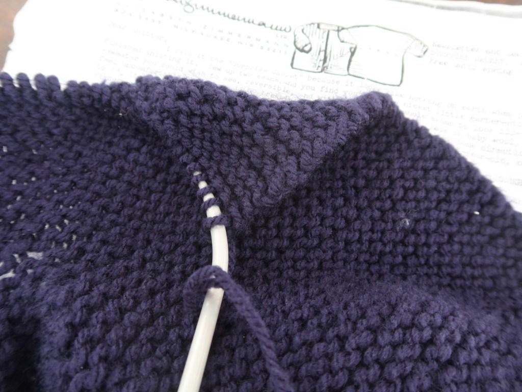 I know… it looks shapeless and weird, but that’s exactly how it’s supposed to look.After you finish it, it’s supposed to fold a certain way and hey presto! A little sweater. That’s why it’s called a Baby Surprise Jacket, after all.