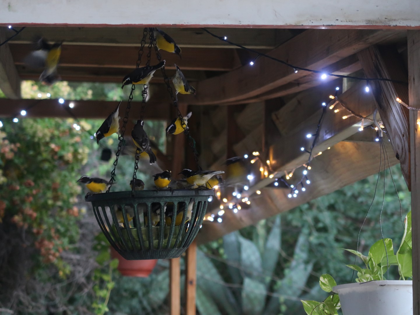 If they have any. Maybe it’s just our human minds that are wired to try and find patterns in utter chaos. These birds are kind of smart though. If we forget to feed them, they start doing fly-bys until we remember. Funny little creatures!