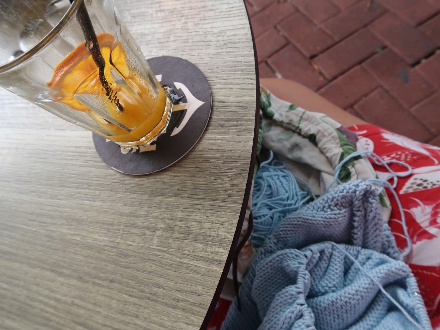 Yes, that’s right. I did knit in public. On a terrace, right in the middle of the town center, where lots and lots of tourists pass by. And it wasn’t scary at all. Why did I think it would be?