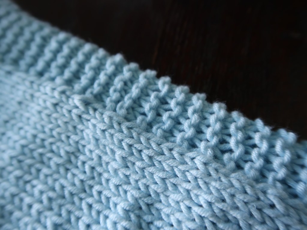 I’ll have to wait till Christmas to see if it really fits though. My grandson’s birthday is this Sunday, but the sweater is meant as a Christmas gift. It’s killing me to wait, but that does give me time to wash it. I hope that will even out the stitches a bit more. It’s cotton, so technically it doesn’t need blocking. I have noticed though that cotton and acryllic yarn do look better after the first washing, so I tend to do that.