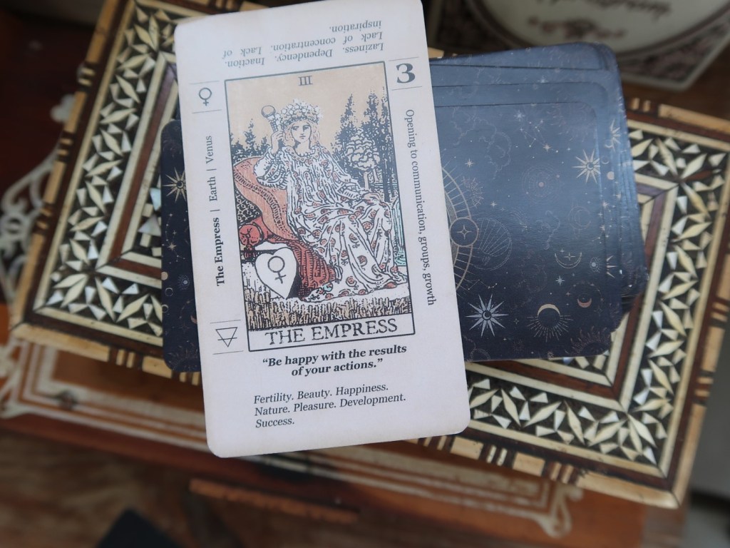 Yesterday I decided to pull a tarot card to signify the theme of the year and I got the Empress. I don’t know if you can read it on the photo, it says: “Be happy with the results of your actions.”” Keywords are fertilty, beauty, happiness, nature, pleasure, development and succes. I’m still very much a beginner (hence the cards with explanations) and also still exploring if and how I really want to use tarot, but it seems fitting. Being happy with the results of ones actions is being authentic, I think.