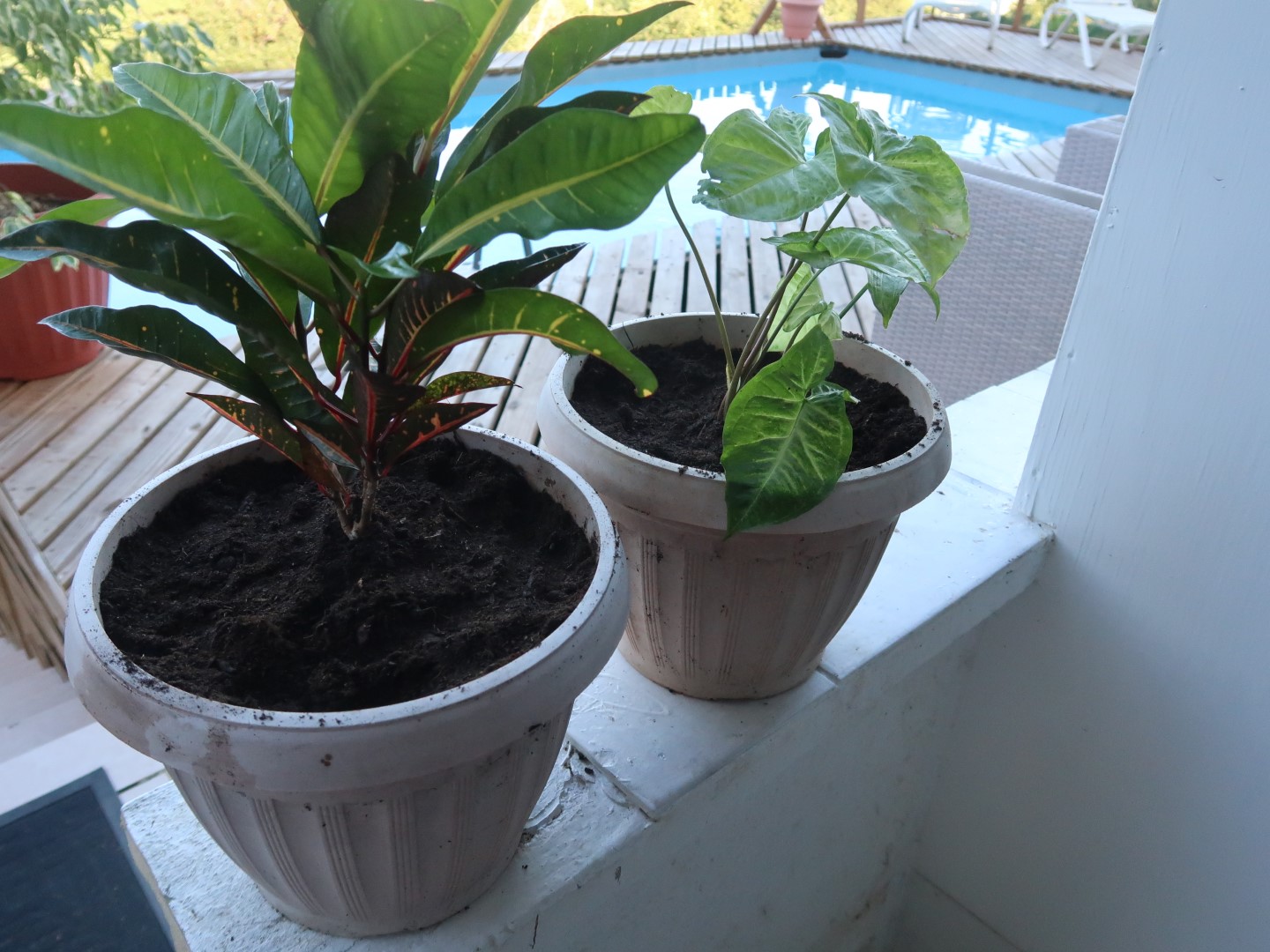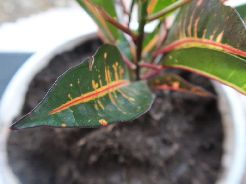 Yesterday I bought myself two new plants, at the supermarket. not to “add a special item to my collection”, but because I felt like it (we just expanded our porch and I need more plants to dress it up) and because they were cheap . I have this “rule” not to pay more than ANG 20 (about $ 12). These were even less. I didn’t clean them, let alone quarantine them. I repotted them despite the fact that they weren’t rootbound yet, used standard potting soil and pots without holes. I did it all wrong again. So what? I’m pretty sure they’ll survive. Or at least the croton (the reddish one) will. The other one was kind of suffering when I bought it, but I like a challenge, so we’ll see what happens next.