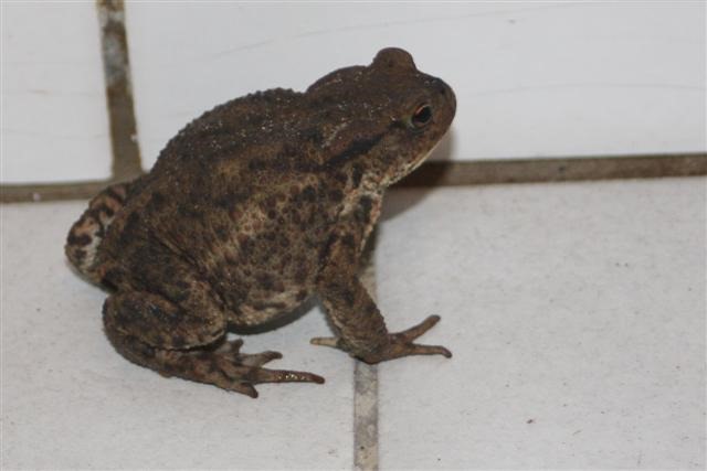 Frog July 12, 2010 ~ Maggie ~ Leave a comment I found a little stranger in the bathroom today. Nope, you can’t go up. I took him outside, but he wasn’t thankful enough to pose for a picture…