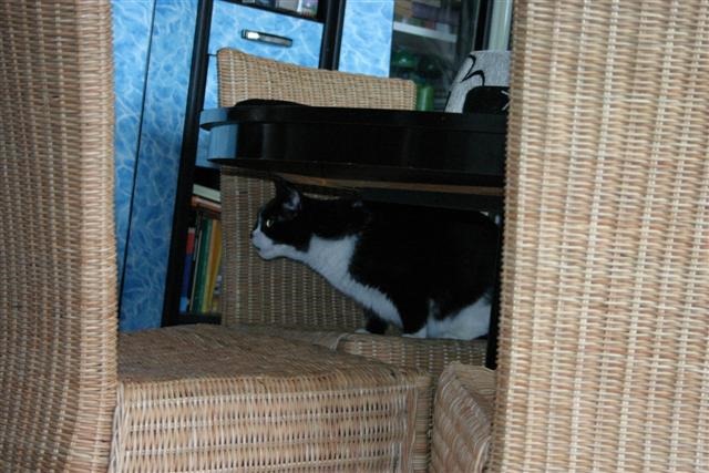 He is always on the look out for a new place to sleep. A pile of bags we left lying around after some exhausting shopping needed to be tested too. He has been sitting there completely satisfied for … um … minutes, until he tried to lie down and discovered the plastic bag (yeah, I know – I was too exhausted to fight those ladies who put everything in a bag so fast, you always realize it only when they hand it over) was too slippery to curl up comfortably.