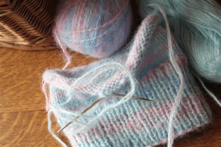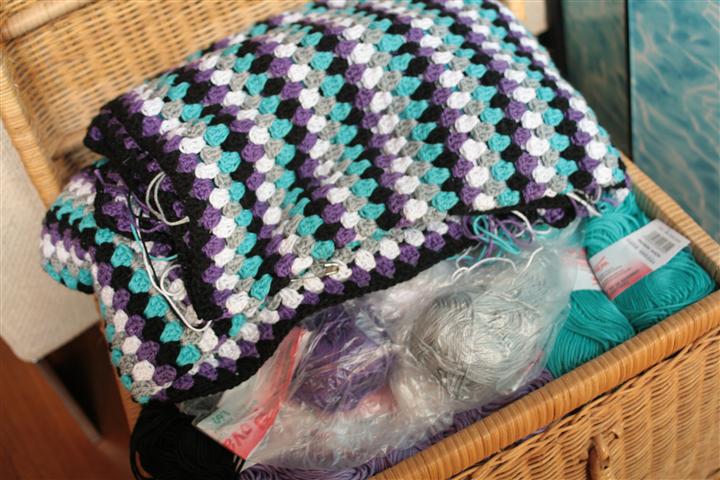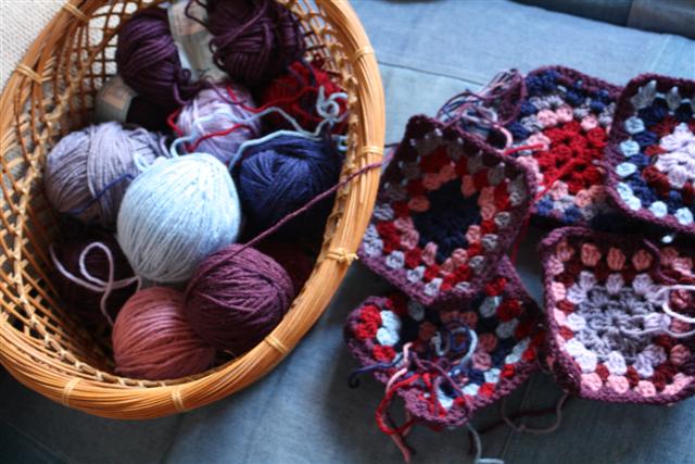 :: a granny stripe blanket. But I already know it won’t be just stripes, since I simply don’t have enough of that yarn. This was a bag of scraps (mostly angora) that I found at the thrift shop. I have some lilac mohair that I plan to add, hoping it will be enough to make this at least a baby blanket.