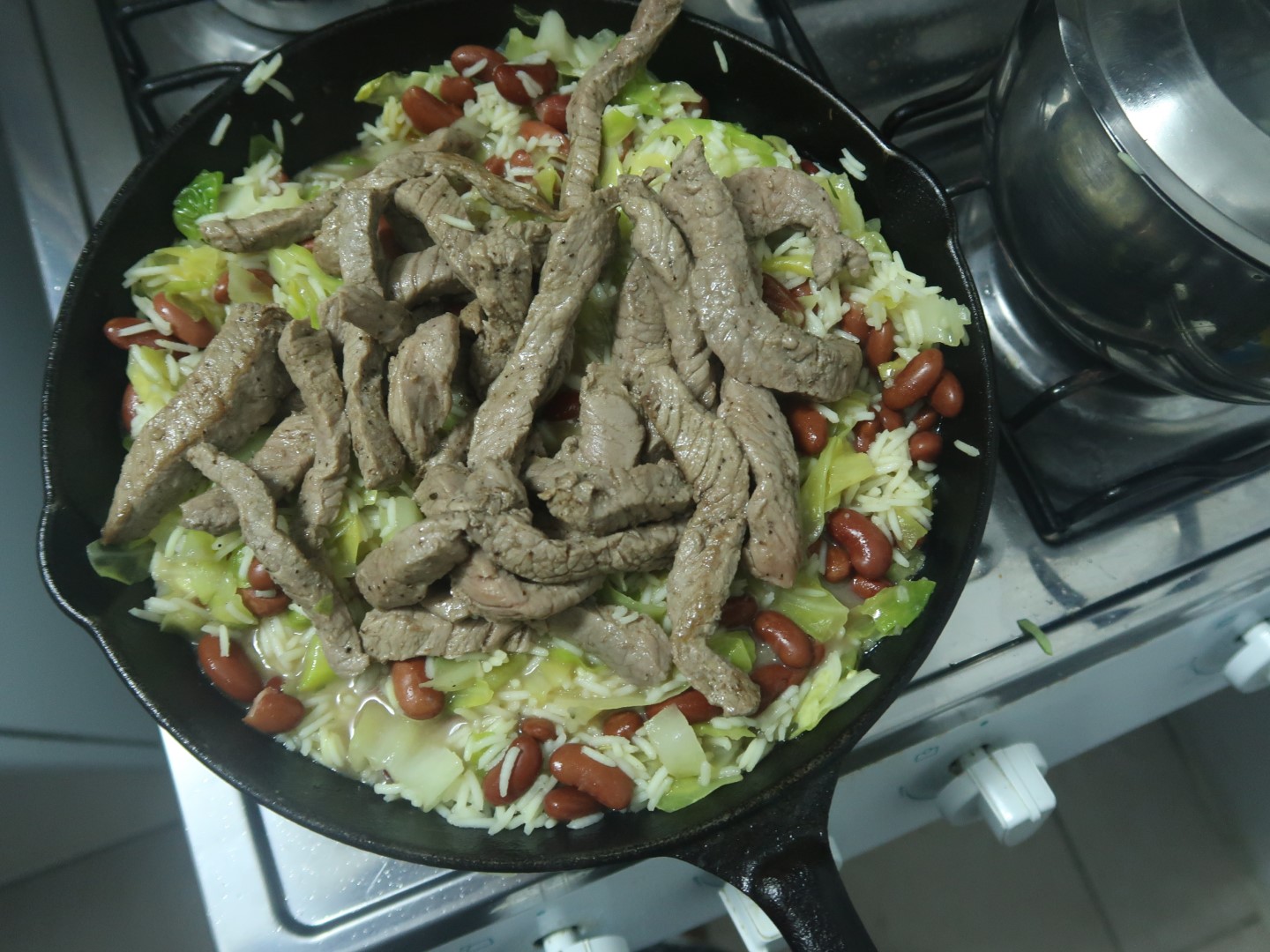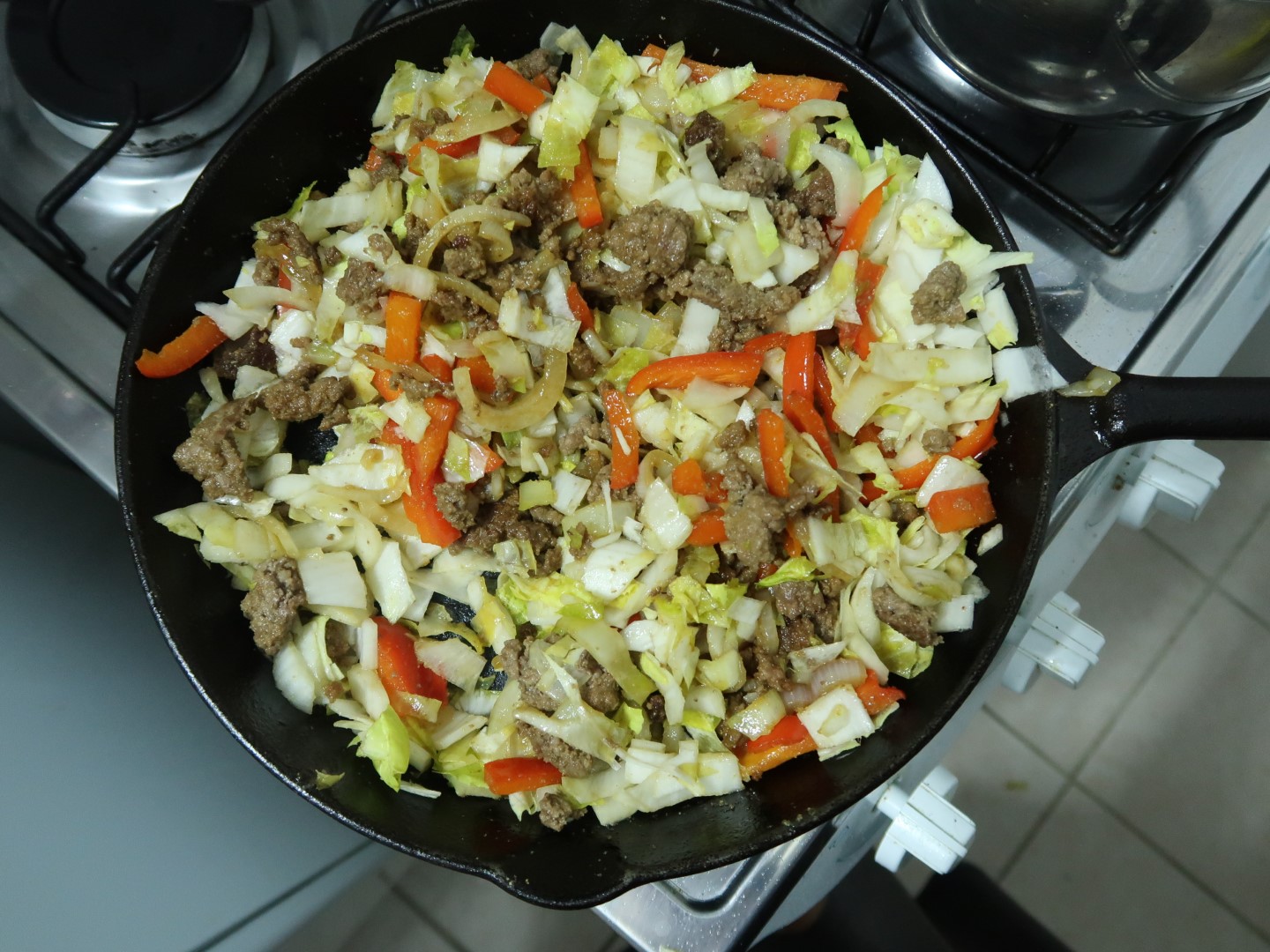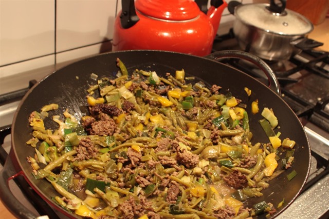 Um, these are the only dinners I took pictures off… Oh, well. Yes, we love stir fry. A lot. Not just how it tastes, but the whole process of making it. No recipe, just use the meat is thawed (we rotate between chicken and minced beef, with the occasional beef strips mixed in), selecting some veggies from the fridge, maybe a can of beans or corn the pantry, add some herbs and spices and voilá, another lovely meal (most of the time – some experiments taste better than others)