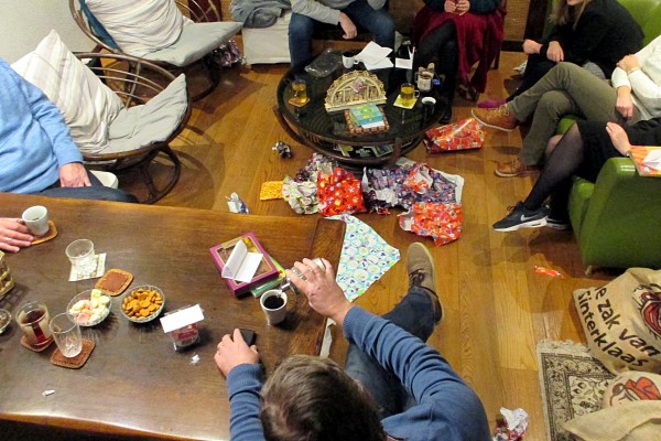 I’ts not about the presents (we do really low-budget gifts), but about the rhymes, the fun. About being together as a family. Saturday Extended family (my parents, my sister and her family and the six* of us.