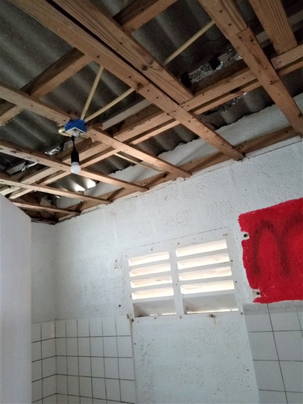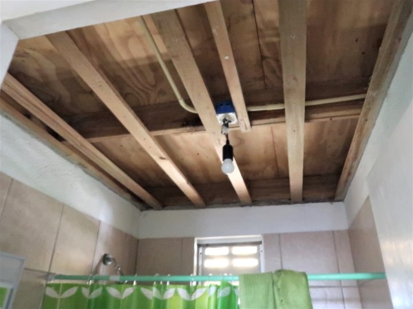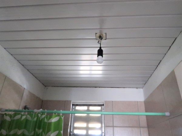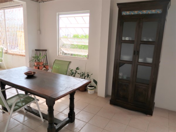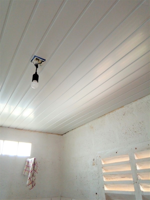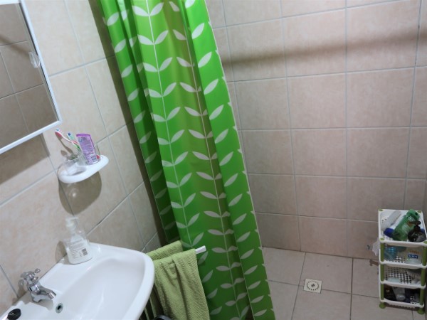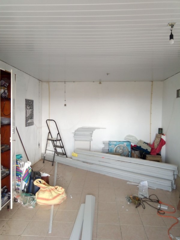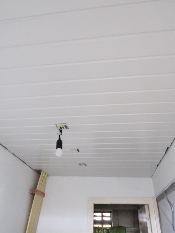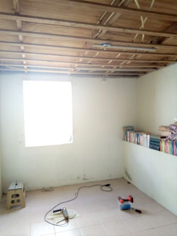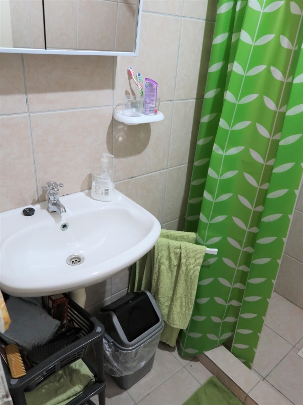 Of course, I’d rather have a nice table and a beautiful cupboard for this (like the one we have in the kitchen) and I’d like to paint those walls and hide that hole. But that will come. Some day.