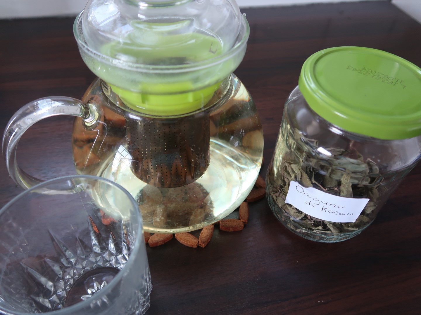 One of the herbs that grows best in my garden is Oregano di Korsou. Don’t let the name fool you, it’s not oregano at all. Its scientific name is Lippia Alba and it’s also known as juanilama, bushy matgrass, and poleo (among many other names). It helps with digestive problems and is also mildly calming (those two uses go together a lot, actually). It is used culinary too: it has a really nice lemony taste.