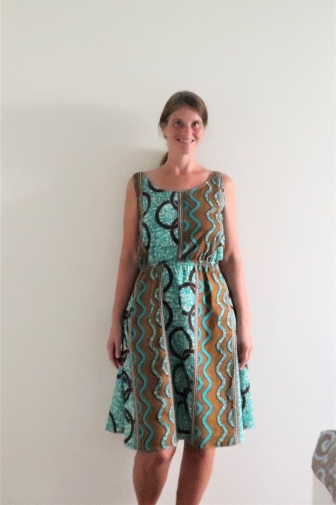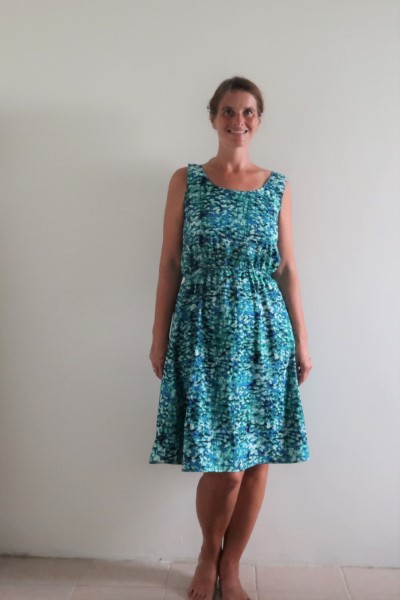 One of the things on my (long) list of things I’d like to be able to do, is sewing my own clothes. Now, I don’t have the time nor the patience to look through intricate patterns, adjust sizes and things like that. Or, to be honest, I tried that and failed miserably. Not my kind of sewing. So I was on a quest for an easy dress pattern, that would tick all the boxes (comfortable, suitable to wear outside the house, preferably a little bit flattering) and that I could make over and over again. There are some nice patterns online, but I found most of them didn’t really have a defined waist shaping. I like to see my waist, while I still have it. I had this store bought (well, thrifted) dress that I really liked. I can put it on over my head (no buttons or zippers!) and it had an elastic waist, that was simple but looked nice. So I decided to copy that dress. Drew the outline on pattern paper and made the bodice (since the waist of this dress was too far up for me) and the skirt a bit longer (these dresses are meant to wear for my normal day-to-day happenings. I like not to worry about what’s showing when I bend over). And then I just started cutting and sewing. Much to my surprise, it actually worked.